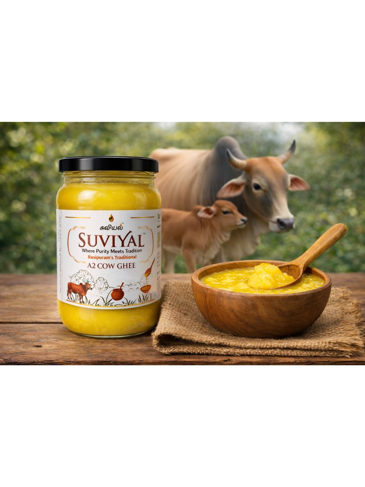 Suviyal is proud to bring you traditional Rasipuram-style ghee, made with honesty and purity. Every spoon reminds you of home, tradition, and authentic taste.