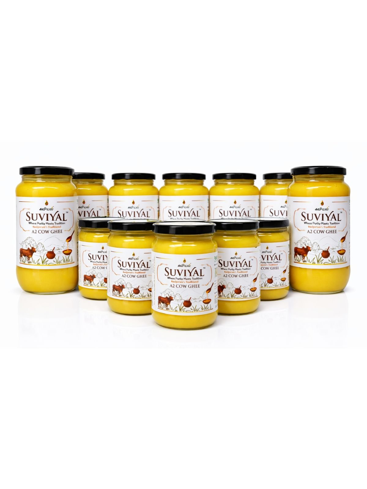 Bring home the true essence of Rasipuram with Suviyal A2 Cow Ghee. Crafted in the dairy-rich region of Rasipuram, our ghee carries the same purity, aroma, and traditional taste that households here have enjoyed for generations.